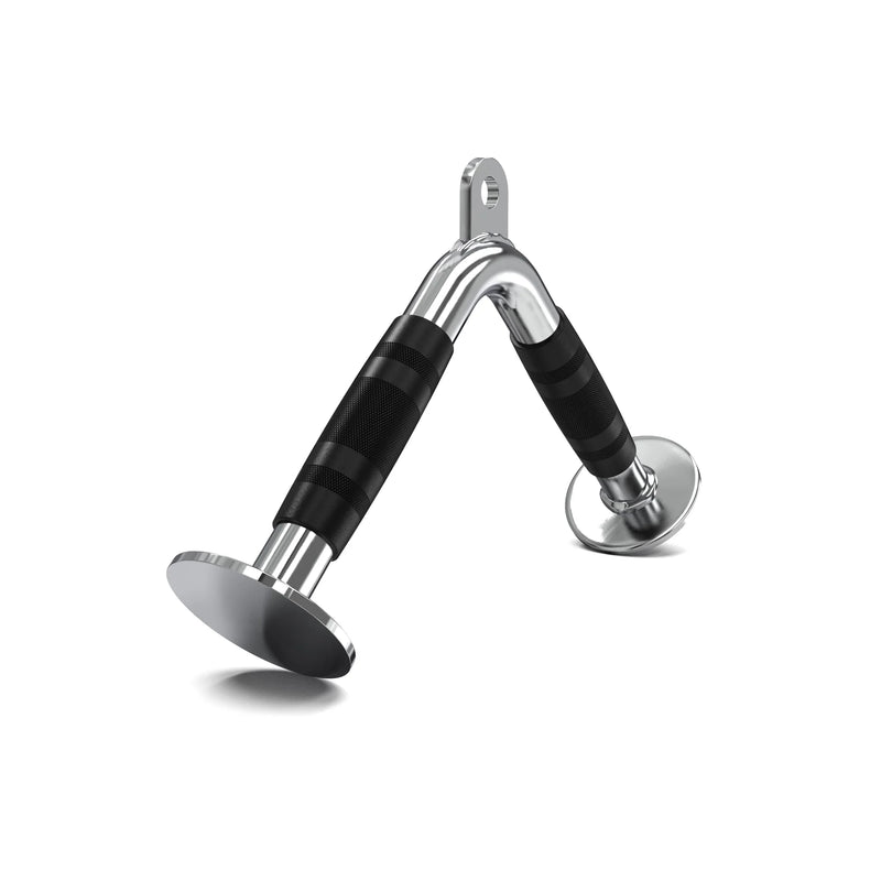 This RitKeep V-Shaped Bar will allow you to build your triceps' size and strength with perfect form and will be used with various compound pushing exercises. Crafted from high-quality solid steel, this cable attachment features a textured surface that ensures a stable and secure grip throughout your workout. Includes rubber grips to accommodate when handled with sweaty hands.